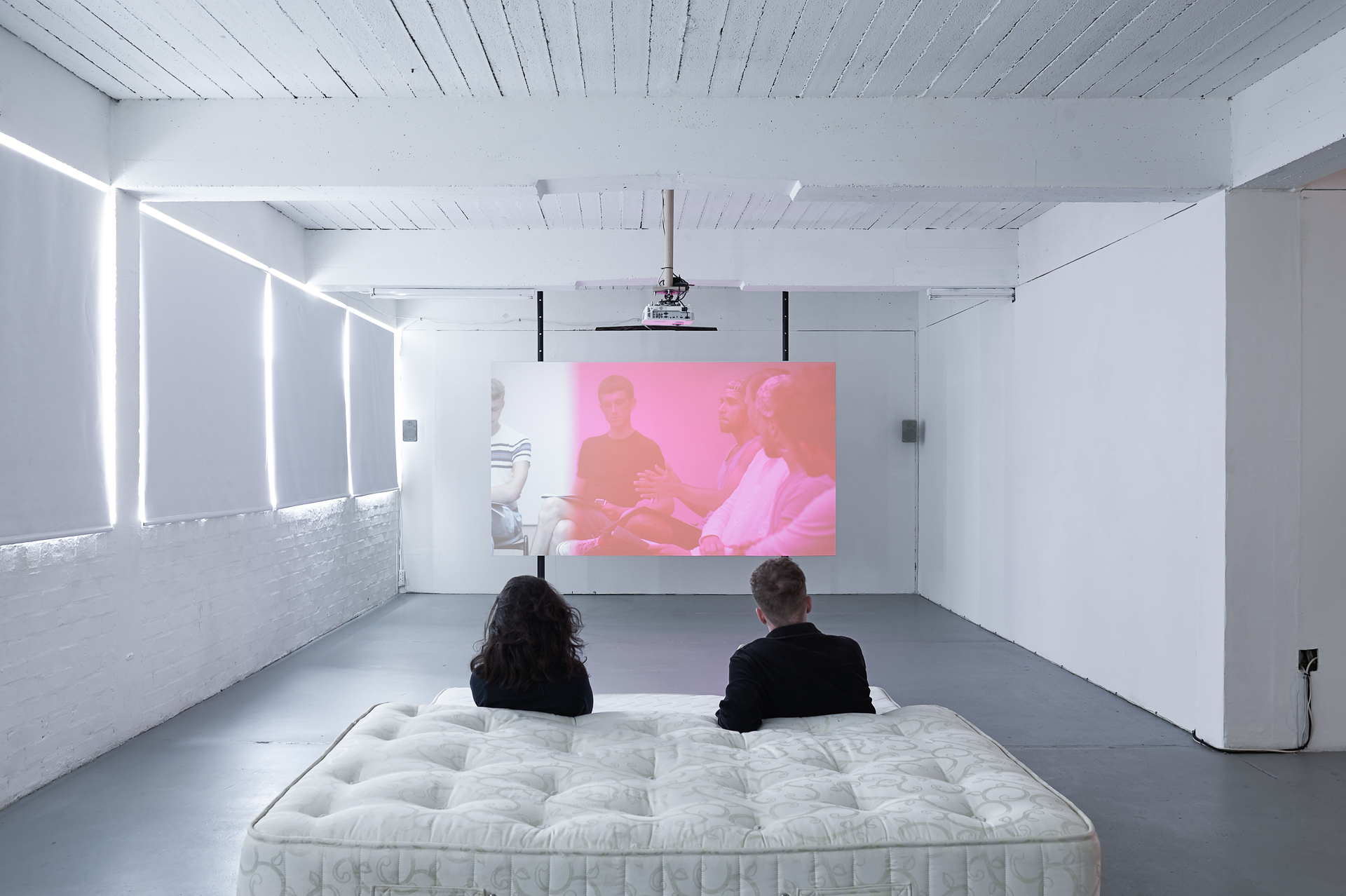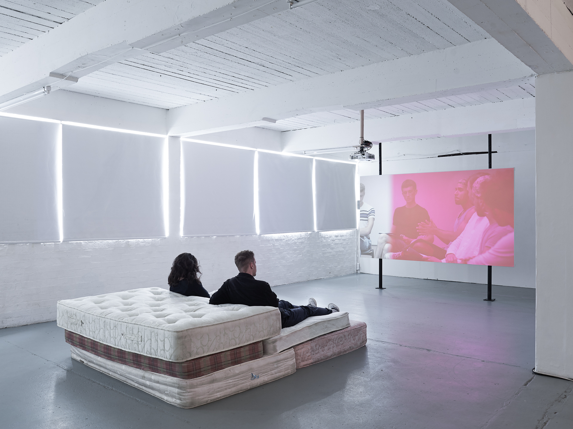 Ian Giles’ film After BUTT engages discussions on BUTT Magazine (2001-2011), the shared nature of distributed ephemera, and Queer permanence. Recorded, transcribed, re-enacted: the men depicted, each of whom were cast based on their resonance with the text, perform Giles’ conversations with the magazine’s founders. Presented in an exhibition of speculative change, it encompasses the importance of intergenerational awareness within communities and how this can influence a movement towards Queerer futures.