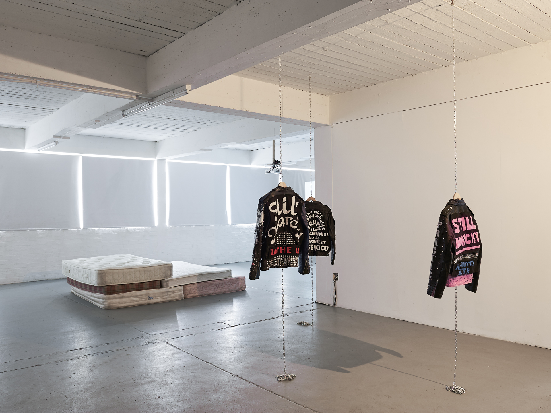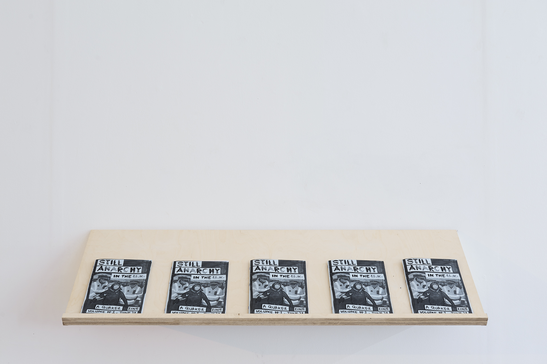Chris Alton’s Still Anarchy brings together two seemingly separate groups, Quakers (mid-17th century) and Punks (mid-1970s). What at first appears to be a contradictory juxtaposition, both groups share several key similarities: they originate from periods of socio-political unrest and enact resistant strategies. This commissioned installation stages the potential of a fictional Quaker-punk band imagined by the artist.